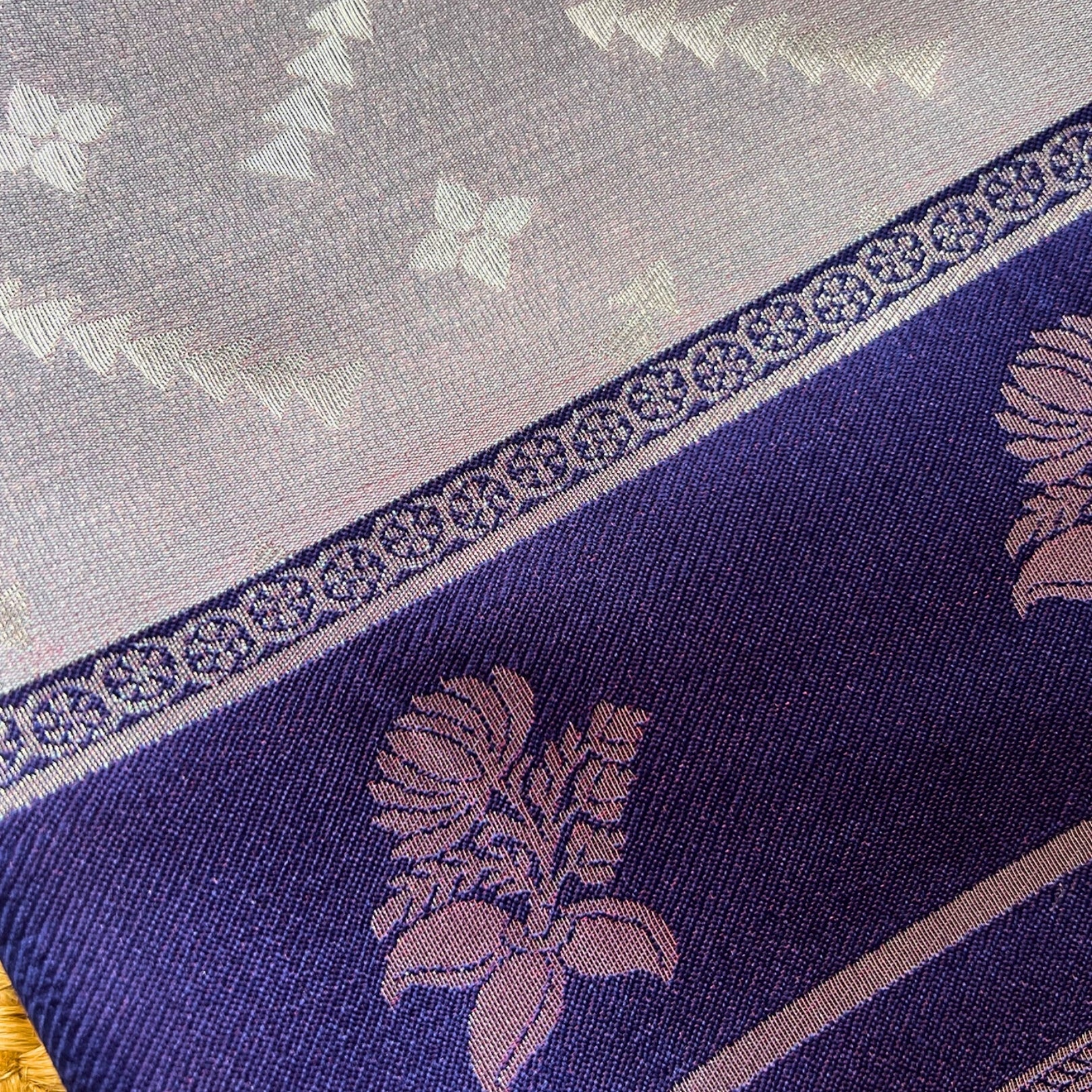 This Art Dupion saree, known for its unique texture and subtle sheen, weaves tradition and sophistication into every thread. The silver body and navy blue border come together like a beautiful melody balanced, elegant, and full of timeless charm. 🤌🏻
