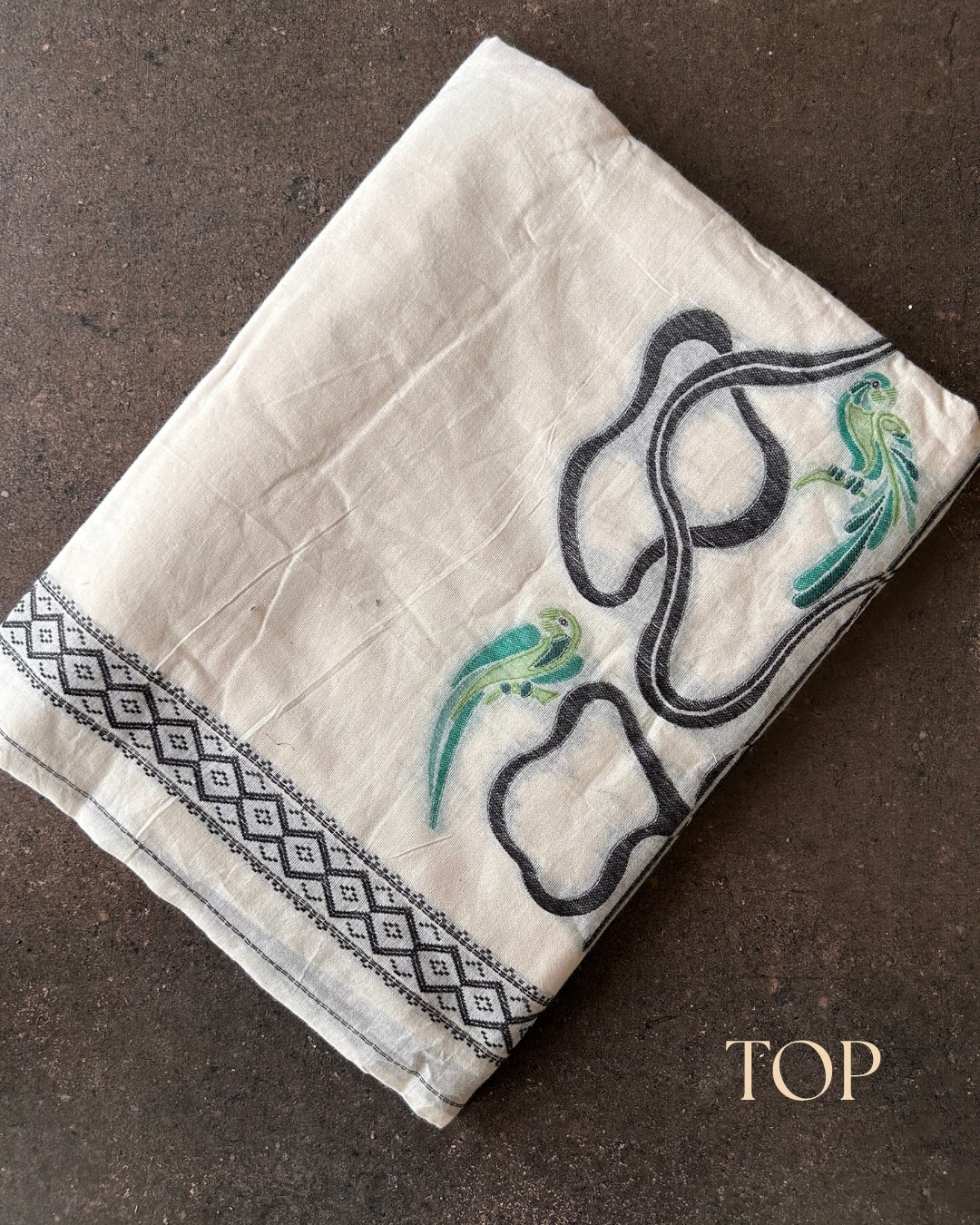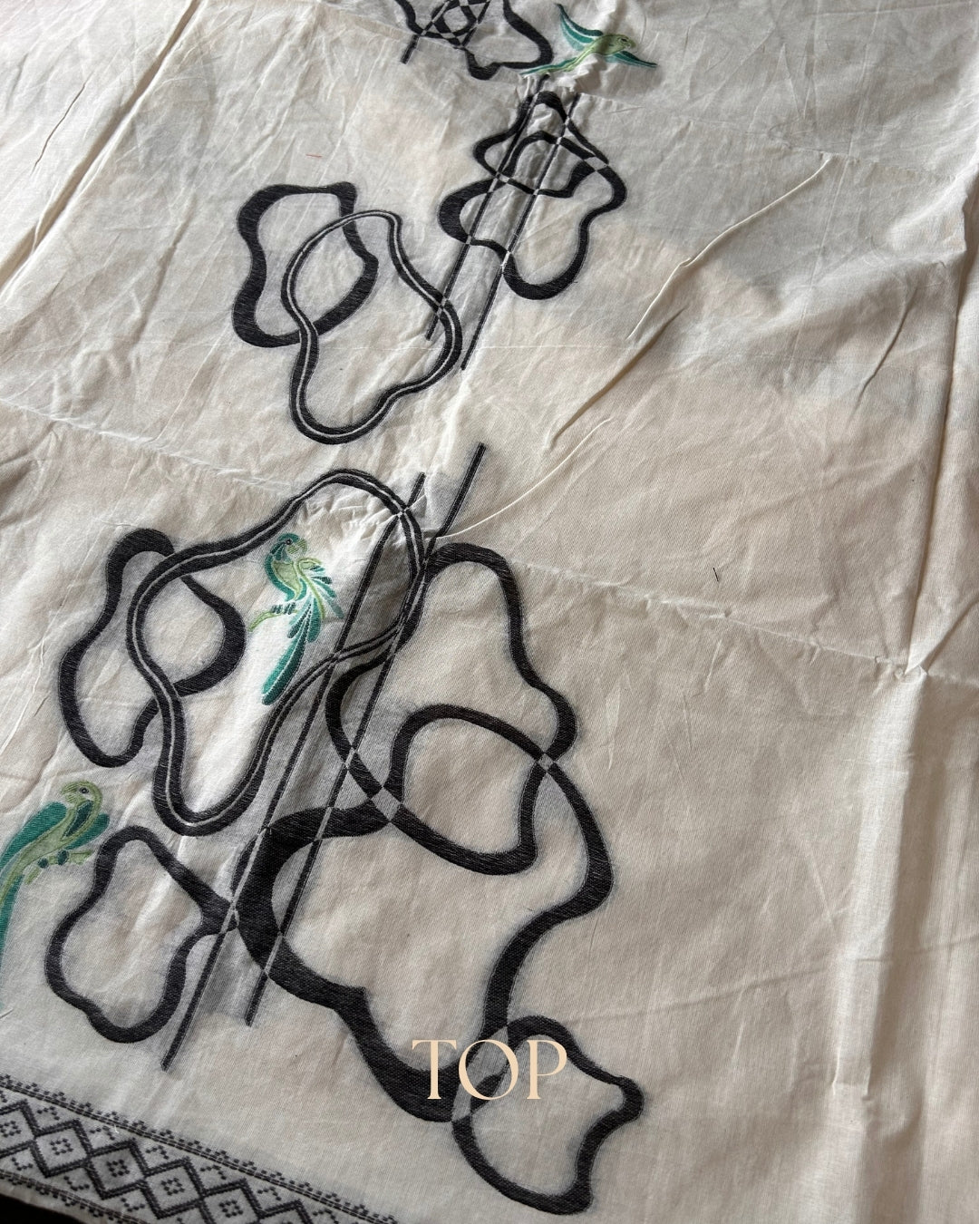 Crafted in pure ivory white, this Chanderi suit features hints of emerald green embroidery for a modern yet traditional touch. A timeless piece for those who love subtle sophistication.