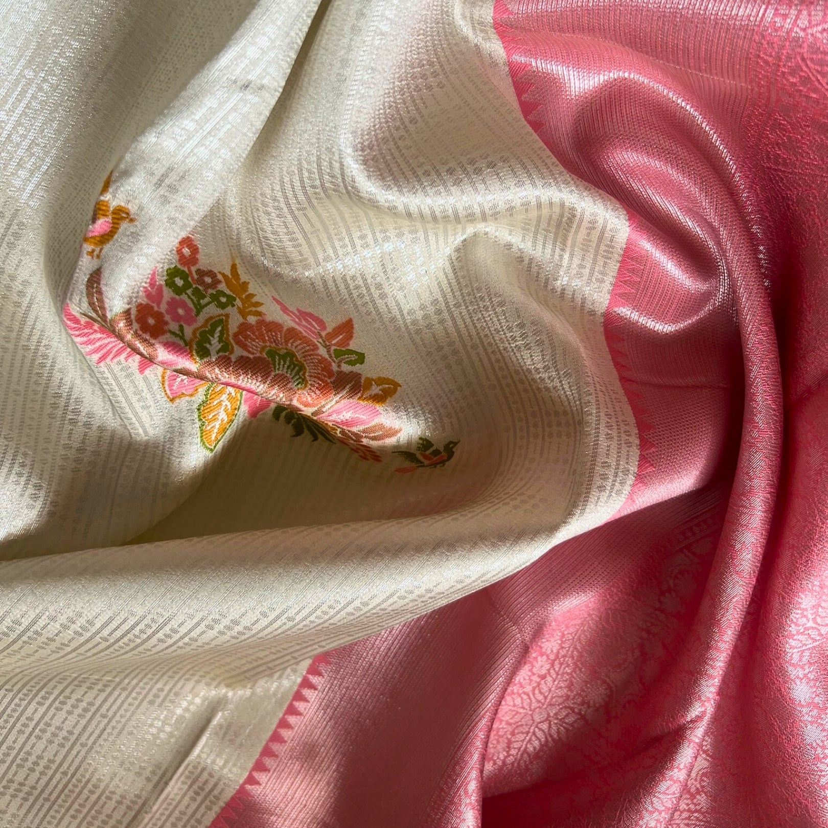 WHITE & ROSE ART DUPION SAREE